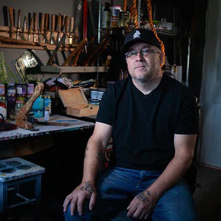 Trevor Hunt, born in 1975, is a Kwakwaka'wakw artist from Fort Rupert, British Columbia, and a member of the renowned Hunt family. His lineage has played a pivotal role in preserving Kwakwaka'wakw art, with his father, Stan Hunt, his grandfather Henry Hunt, and great-grandfather Mungo Martin all contributing to the survival of their cultural heritage. From a young age, Trevor was immersed in this artistic tradition, starting his journey as a painter at 13 and later honing his carving skills under the guidance of his father and other family members.