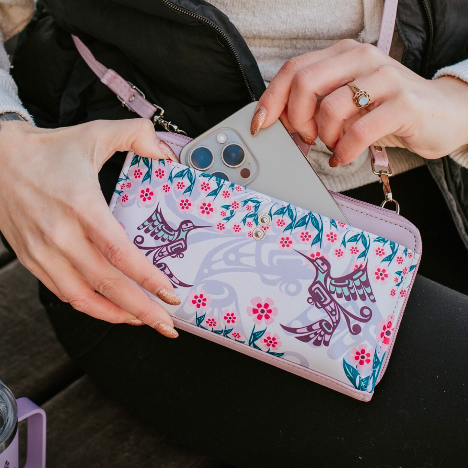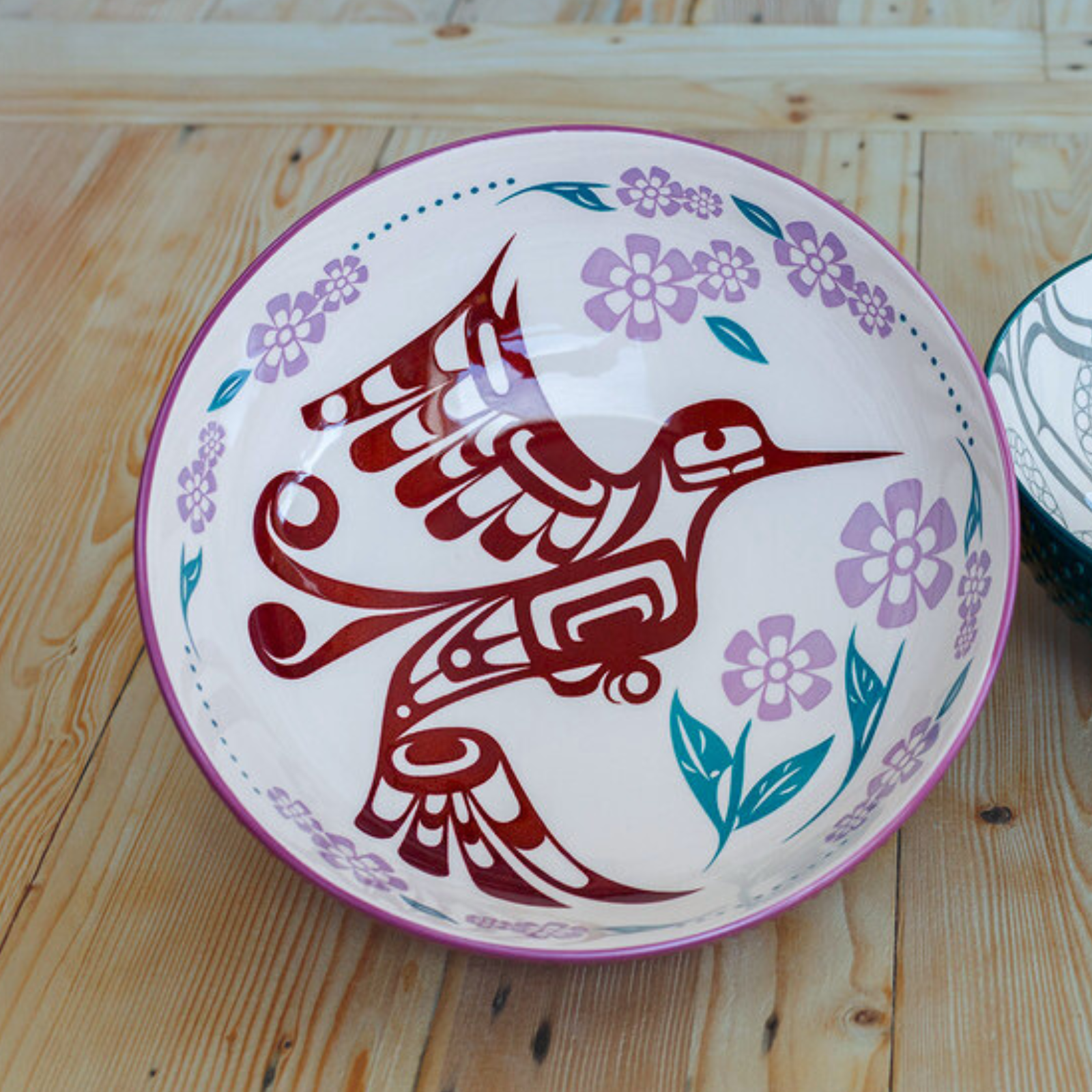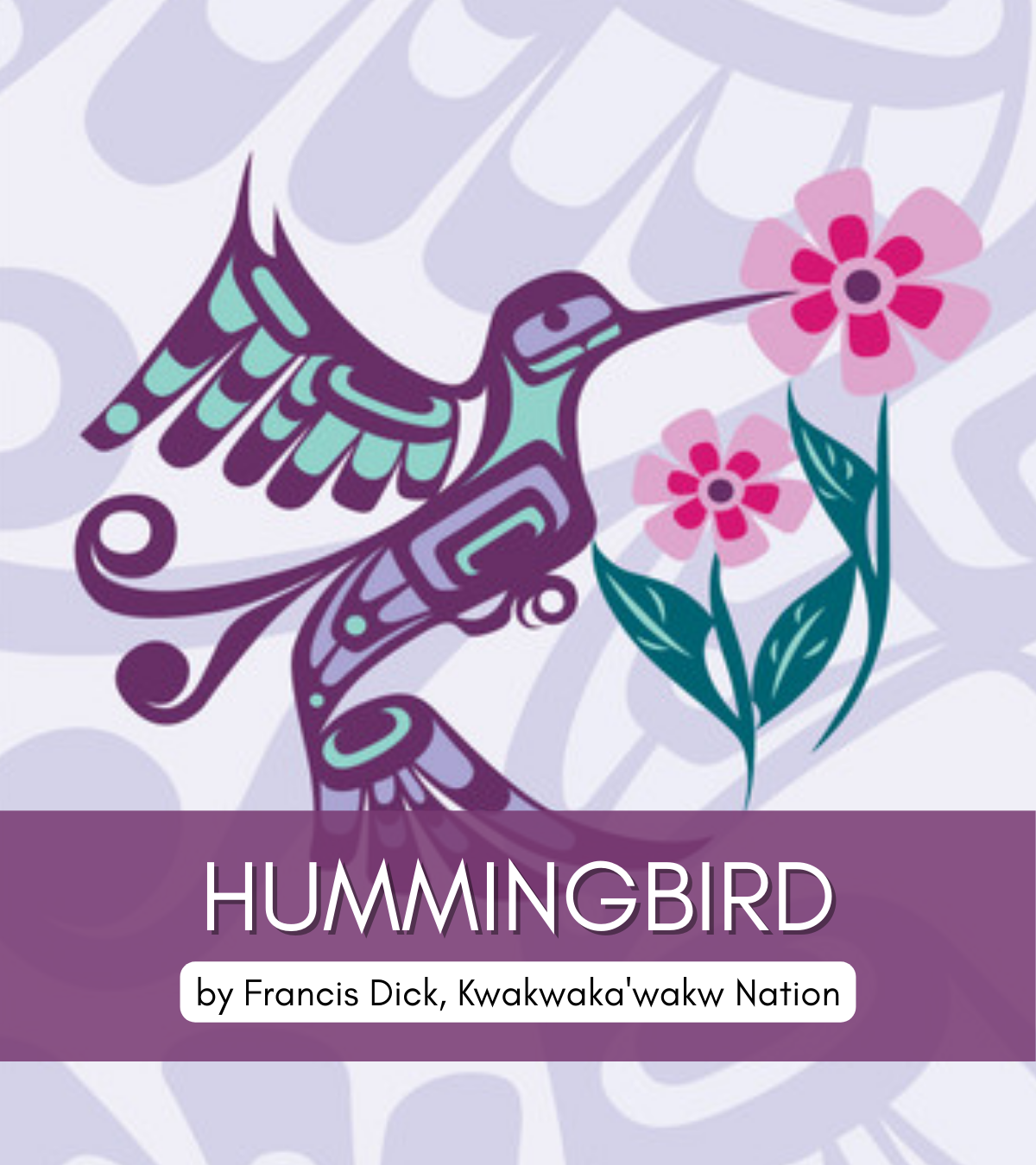 In this piece, Francis Dick (Kwakwaka’wakw Nation) brings the Hummingbird into relationship with the flower—a moment of exchange. One offers nourishment, the other ensures continuity. Together, they reflect a core teaching: that strength lives in reciprocity.