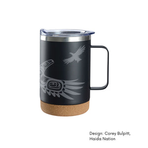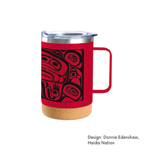 The travel mugs are made by Native NorthWest, a company that operates on the unceded territory of the Musqueam, Coast Salish Nation in British Columbia.